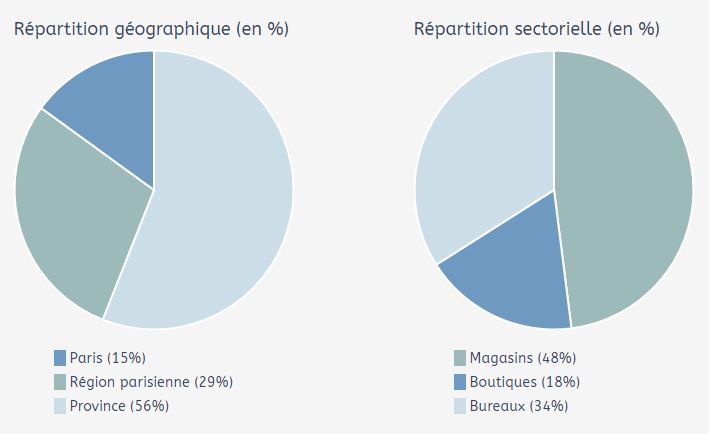 Le parc immobilier de la SCPI est très large et se compose aujourd’hui en grande partie de locaux de commerce. On y retrouve aussi des locaux d’activités et des bureaux. Ces biens immobiliers se trouvent majoritairement en régions, une autre fraction se situant dans la région parisienne et à Paris.